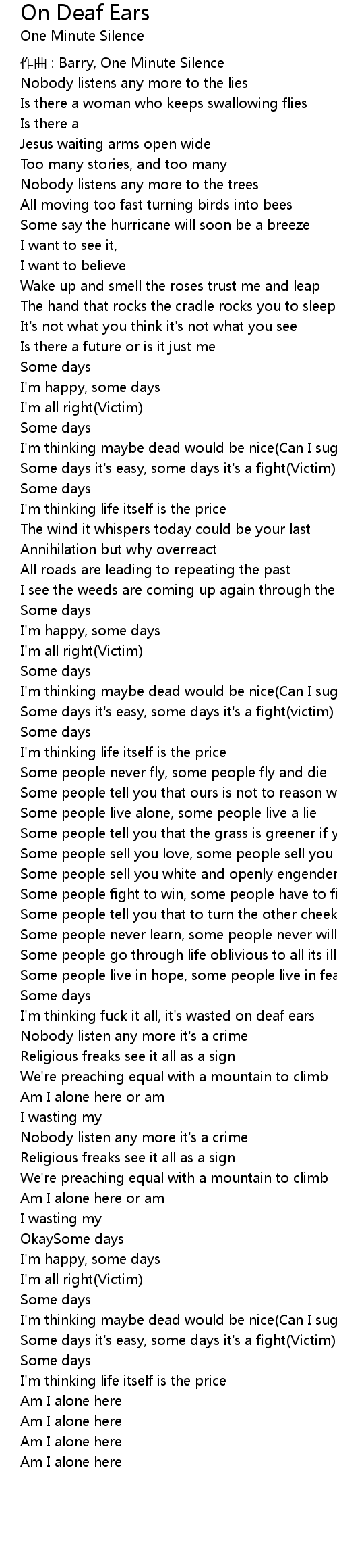 | I' m thinking fuck it all, it' s wasted on deaf ears | |