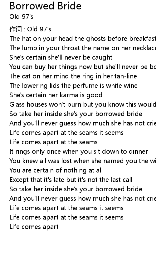 | So take her inside she' s your borrowed bride | |