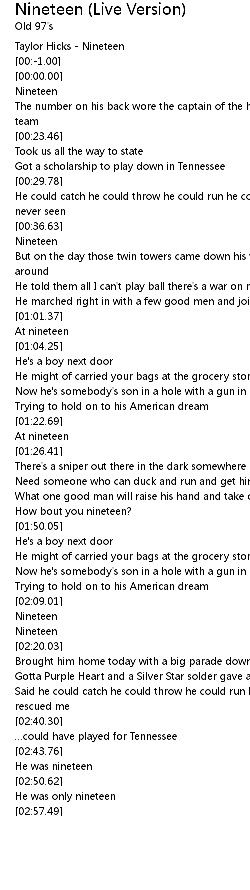 | [00:39.10] | Nineteen |
