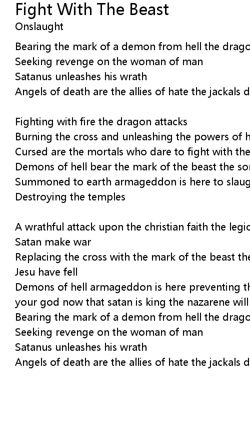 | Cursed are the mortals who dare to fight with the beast | |