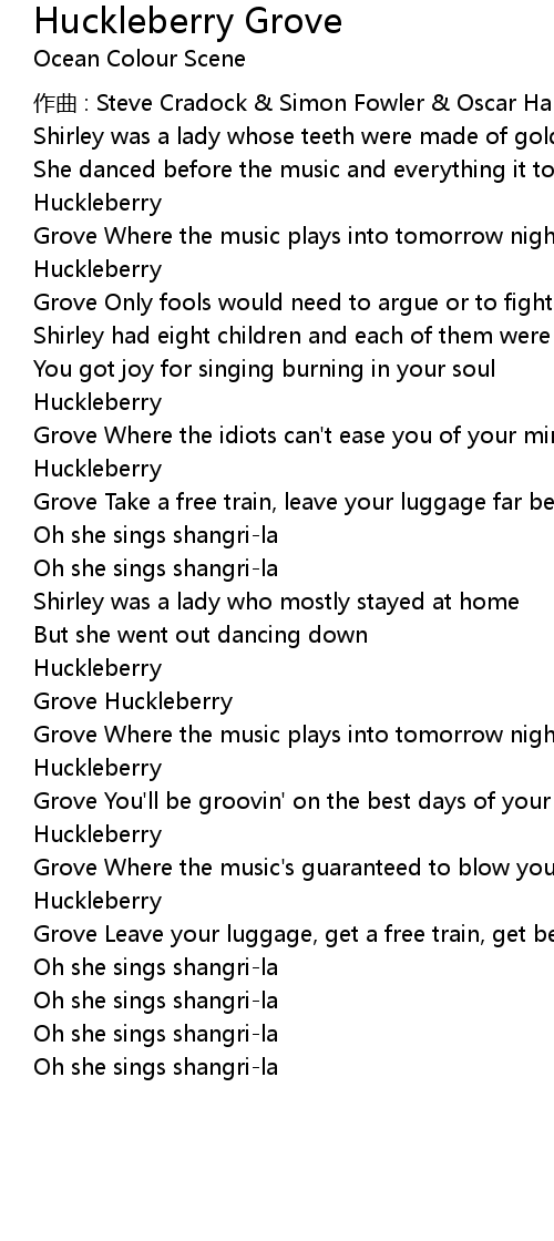 | Song | Huckleberry Grove |