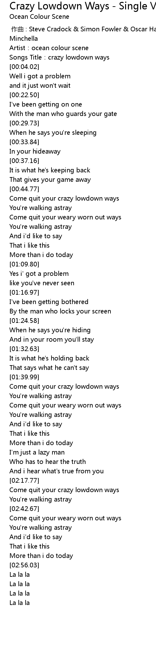 | [00:01.65] | Songs Title:crazy lowdown ways |