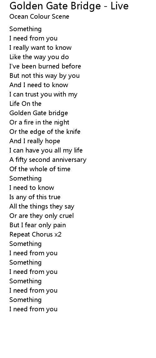 | Song | Golden Gate Bridge - Live |
