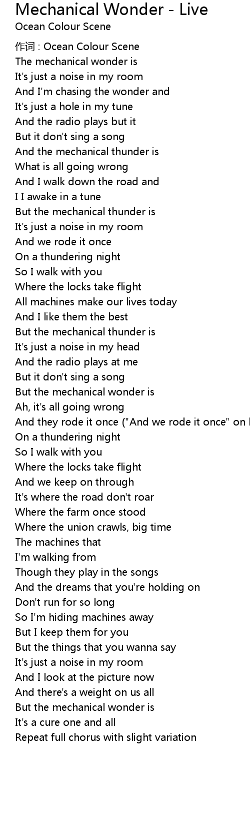 | Song | Mechanical Wonder - Live |