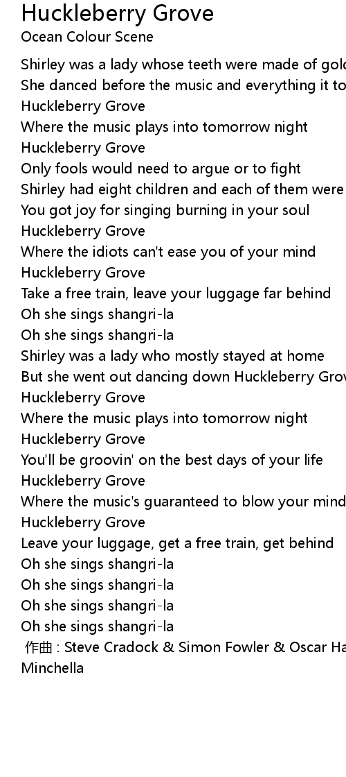 | Song | Huckleberry Grove |