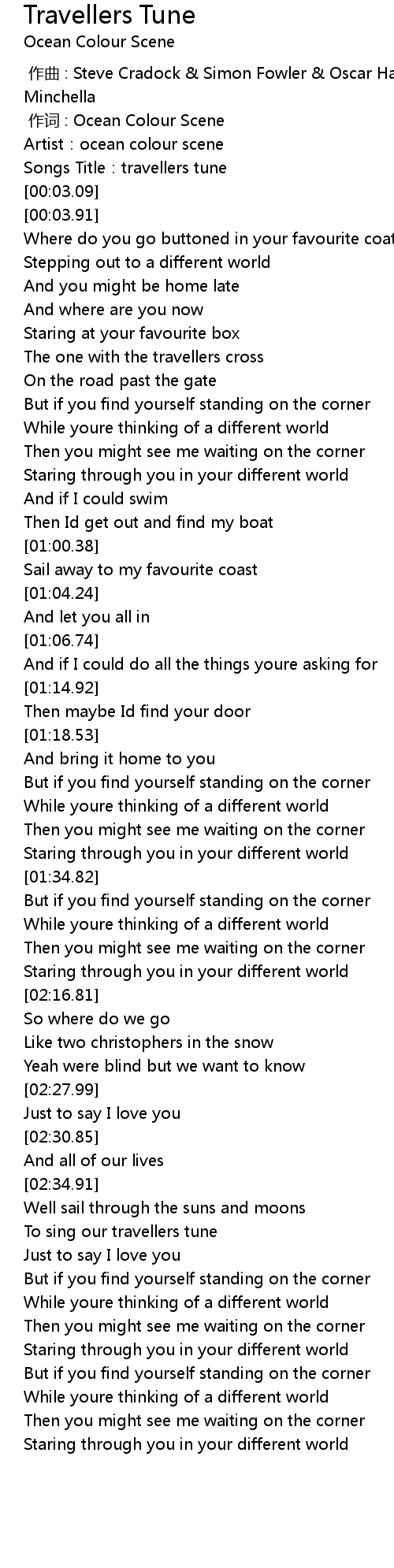 | [00:00.30] | zuò cí : Ocean Colour Scene |