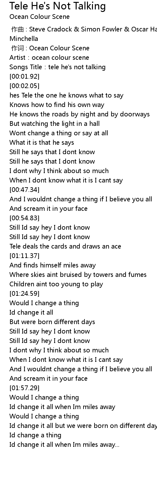 | [00:01.67] | Songs Title: tele he' s not talking |