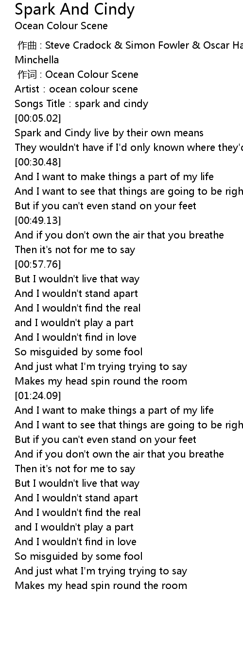 | [00:13.82] | Spark and Cindy live by their own means |