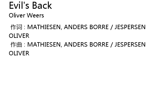 | [00:00.000] | 作词 : MATHIESEN, ANDERS BORRE / JESPERSEN, ANDERS BO / WEERS, OLIVER |