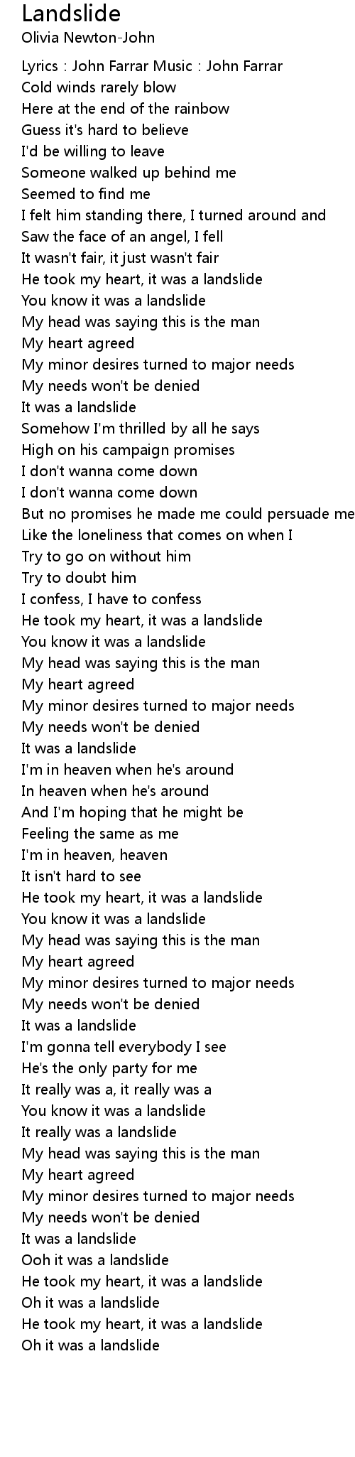 | He took my heart, it was a landslide | |