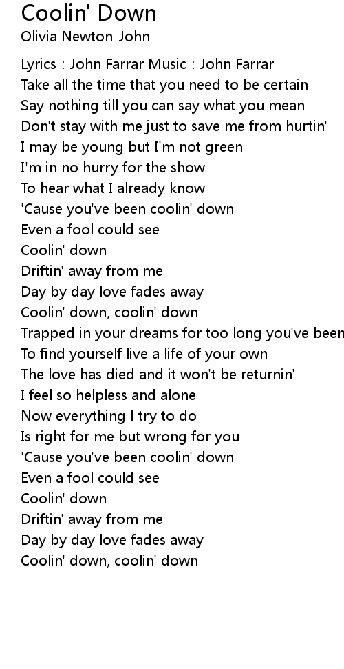 | Coolin' down, coolin' down | |
