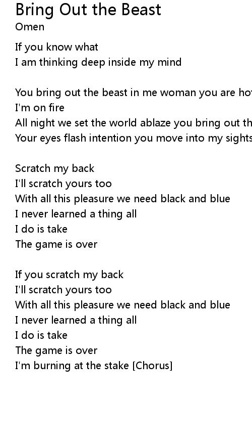 All night we set the world ablaze you bring out the beast in me |