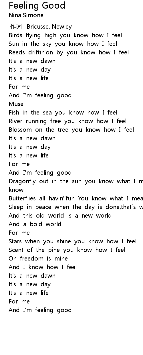 | [02:38.341] | And I' m feeling good |