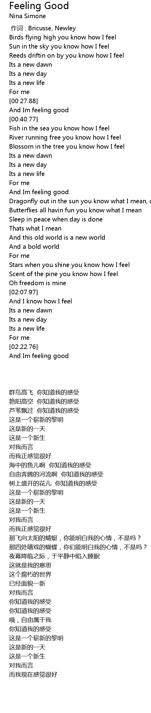 | [00:58.27] | Blossom in the tree you know how I feel |