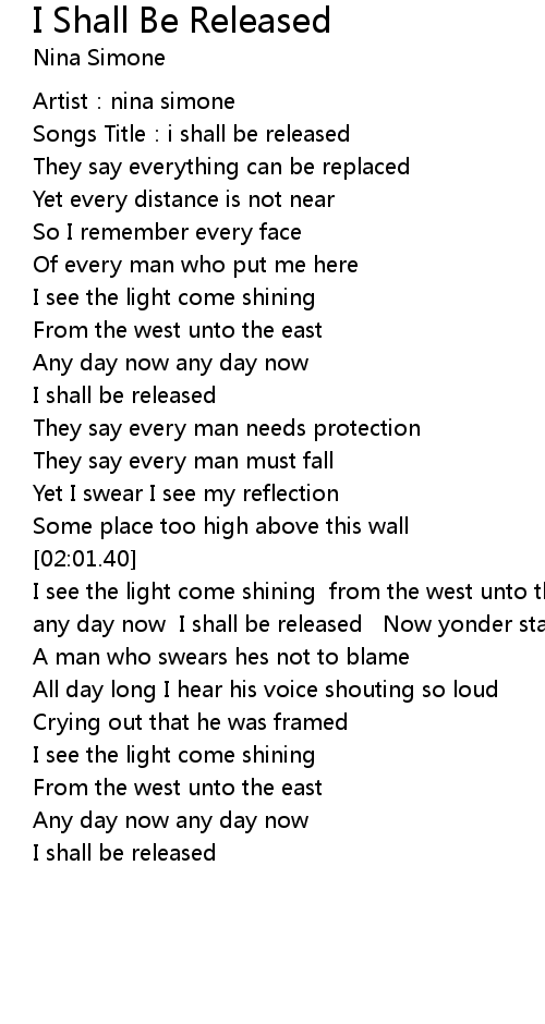 | [00:01.82] | Songs Title: i shall be released |
