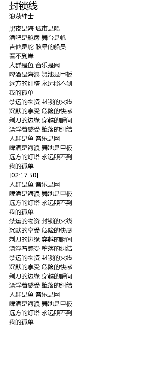 | [04:17.21] | 禁运的物资 封锁的火线 |