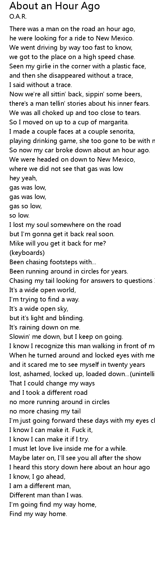 There was a man on the road an hour ago, |