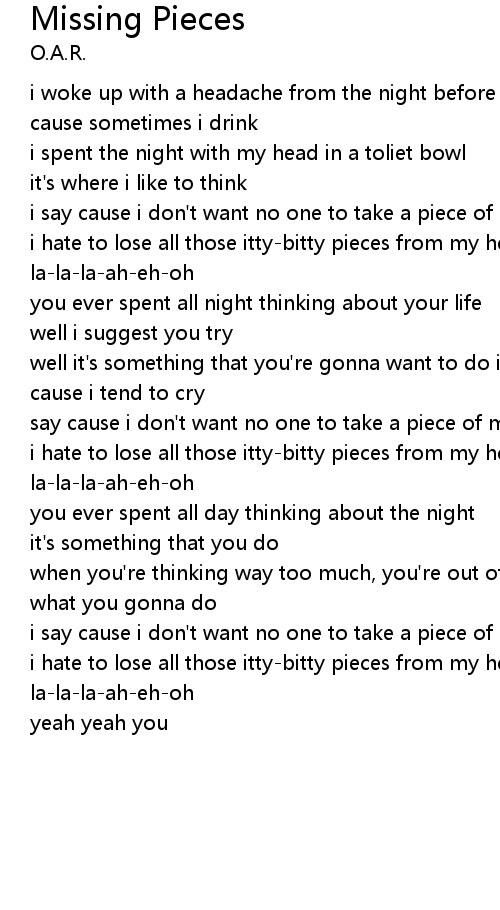 i hate to lose all those itty-bitty pieces from my heart |