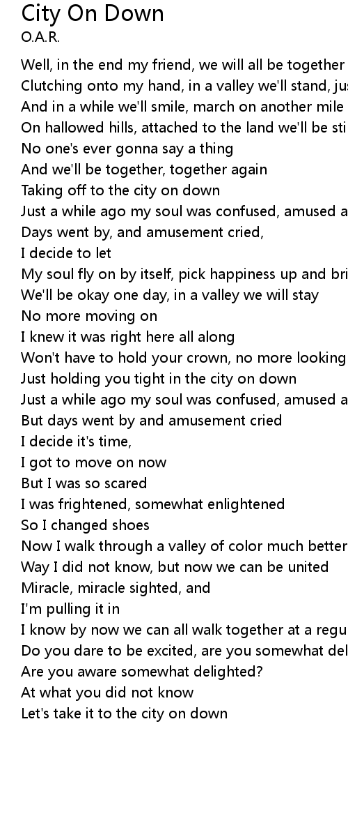Let's take it to the city on down |