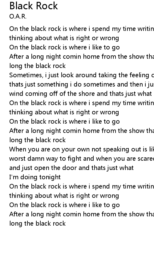 On the black rock is where i spend my time writing a memory or writing a rhyme thinking about what is right or wrong |