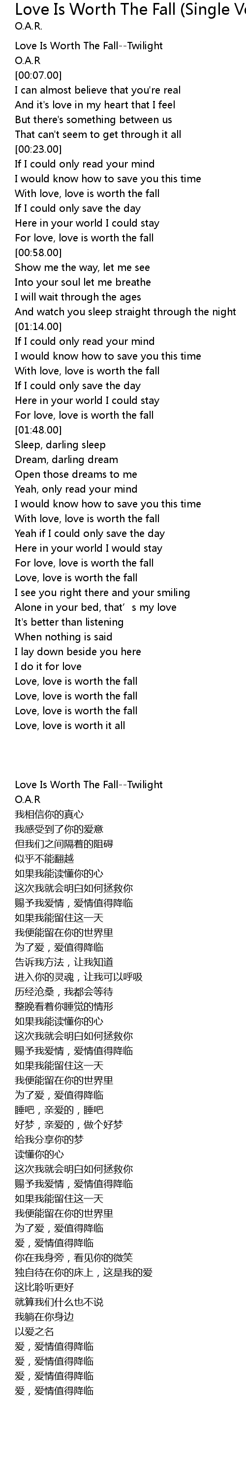 | [00:01.00] | Love Is Worth The Fall--Twilight |