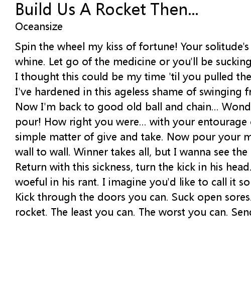 rocket. The least you can. The worst you can. Send us on our way... |