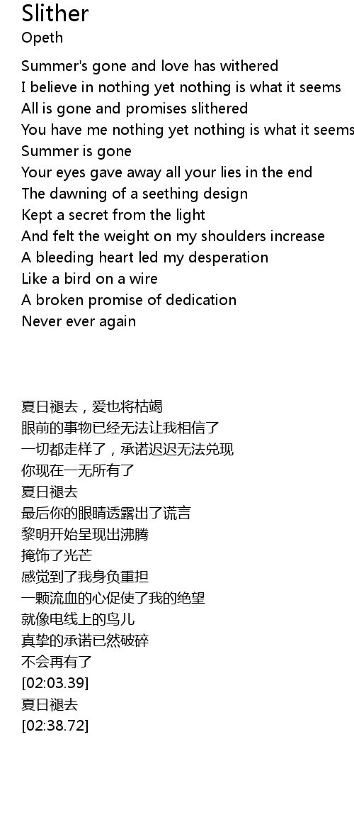 | All is gone and promises slithered | |