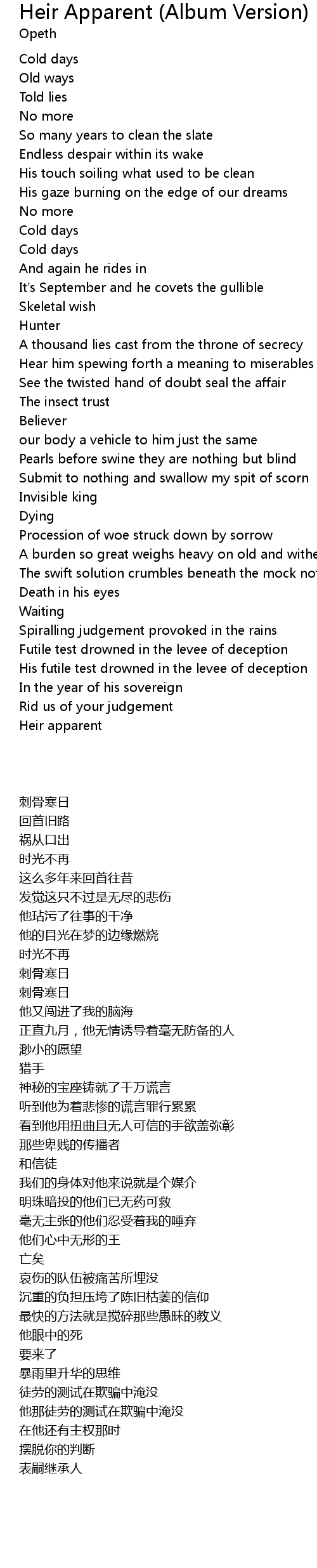 | [05:44.09] | A burden so great weighs heavy on old and withered beliefs |