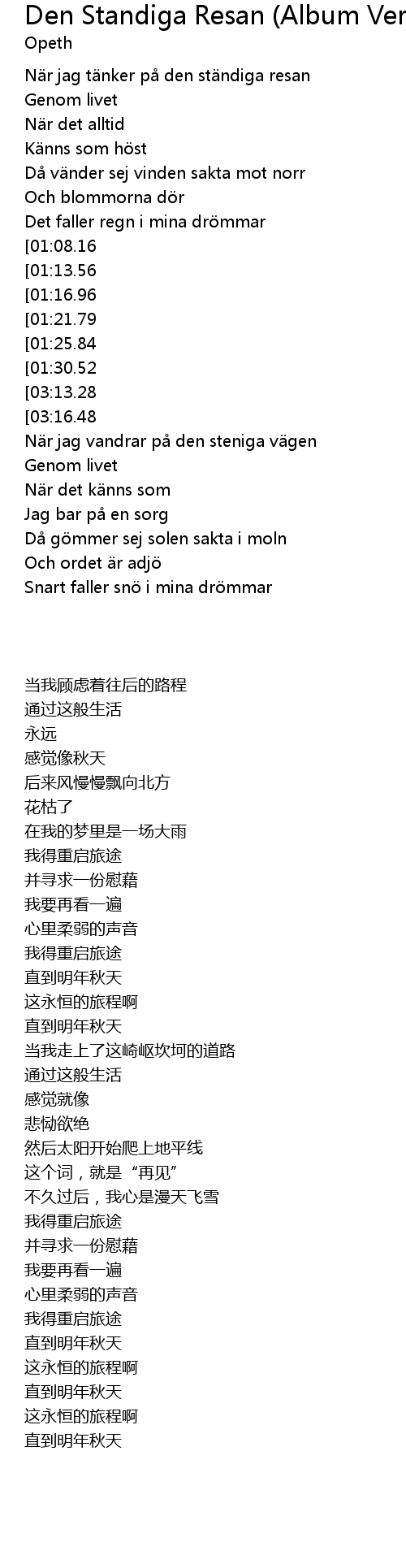 | [03:21.87][03:13.28][01:33.92] | Den ständiga resan |