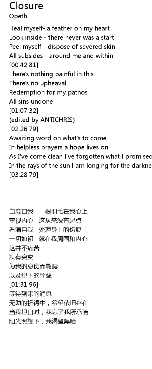 | [00:33.09] | All subsides - around me and within |