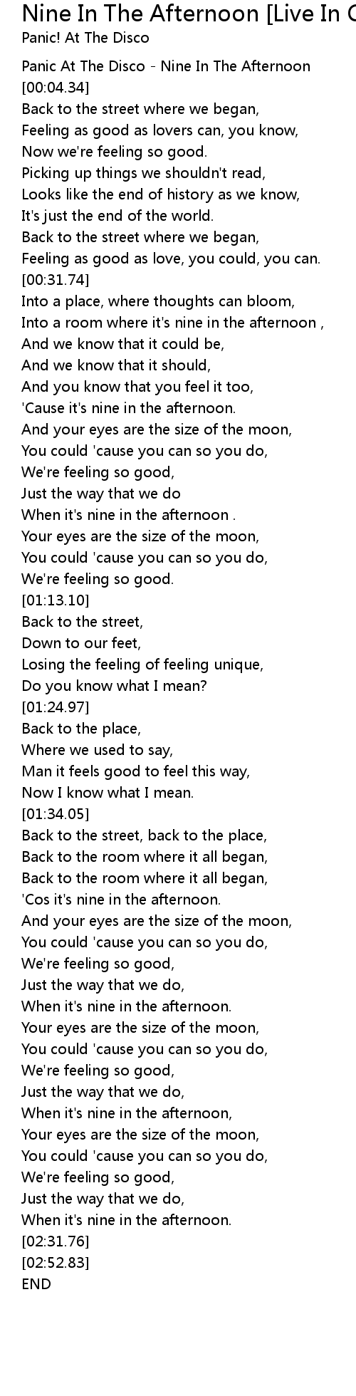 Panic At The Disco - Nine In The Afternoon |