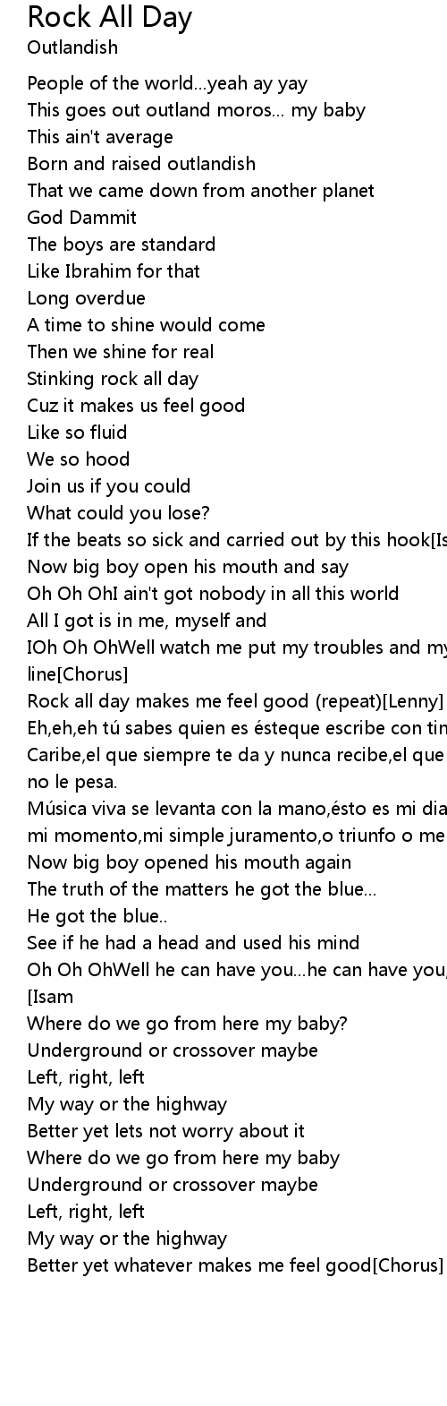 | Rock all day makes me feel good (repeat)[Lenny] | |