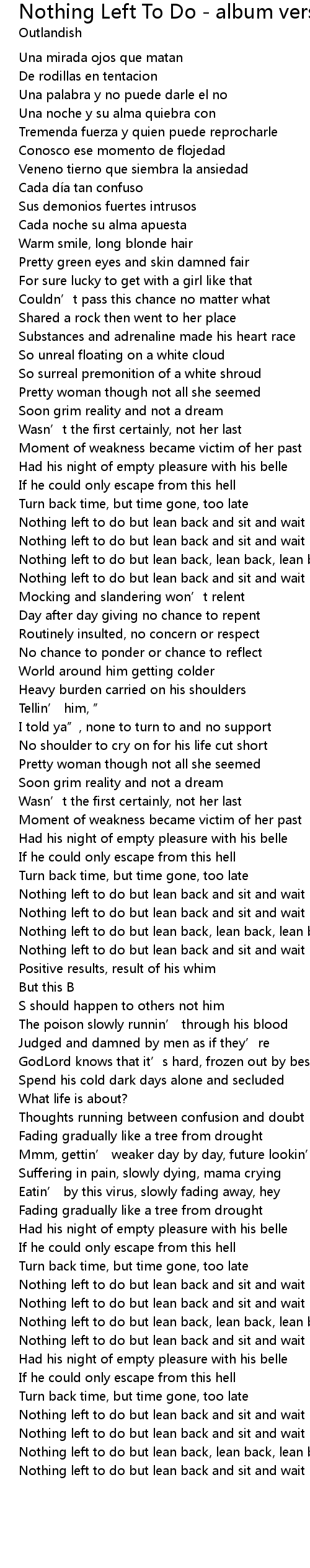 | Song | Nothing Left To Do - album version |