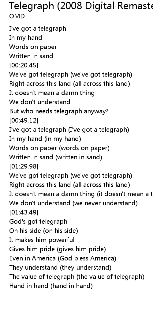 I've got a telegraph (I've got a telegraph) |