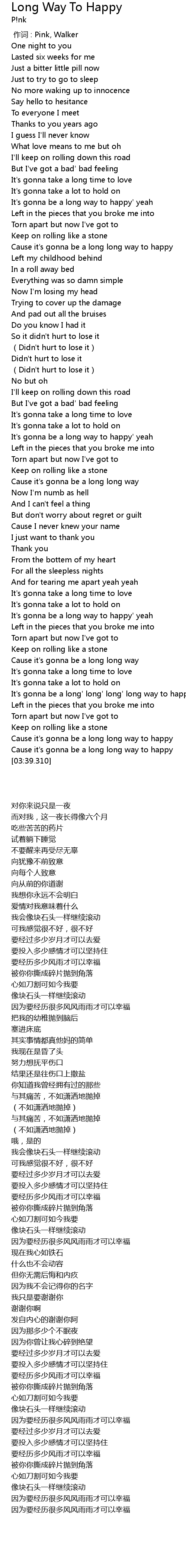 | [00:00.00] | 作词 : Pink, Walker |