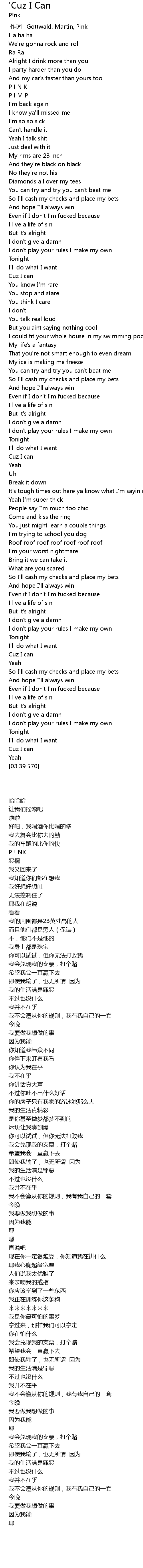 | [00:00.00] | 作词 : Gottwald, Martin, Pink |