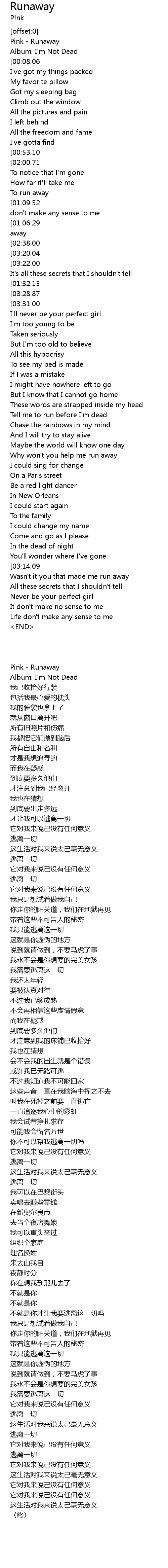 Pink - Runaway |