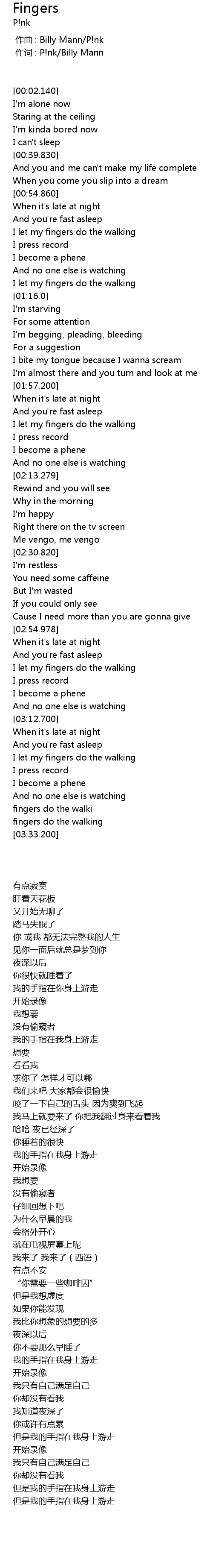 | [00:00.259] | zuo ci : P! nk Billy Mann |