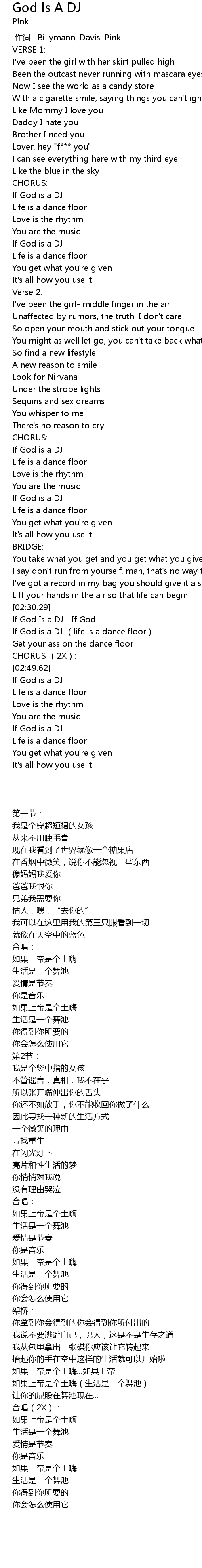 | [02:38.64] | If God is a DJ life is a dance floor |