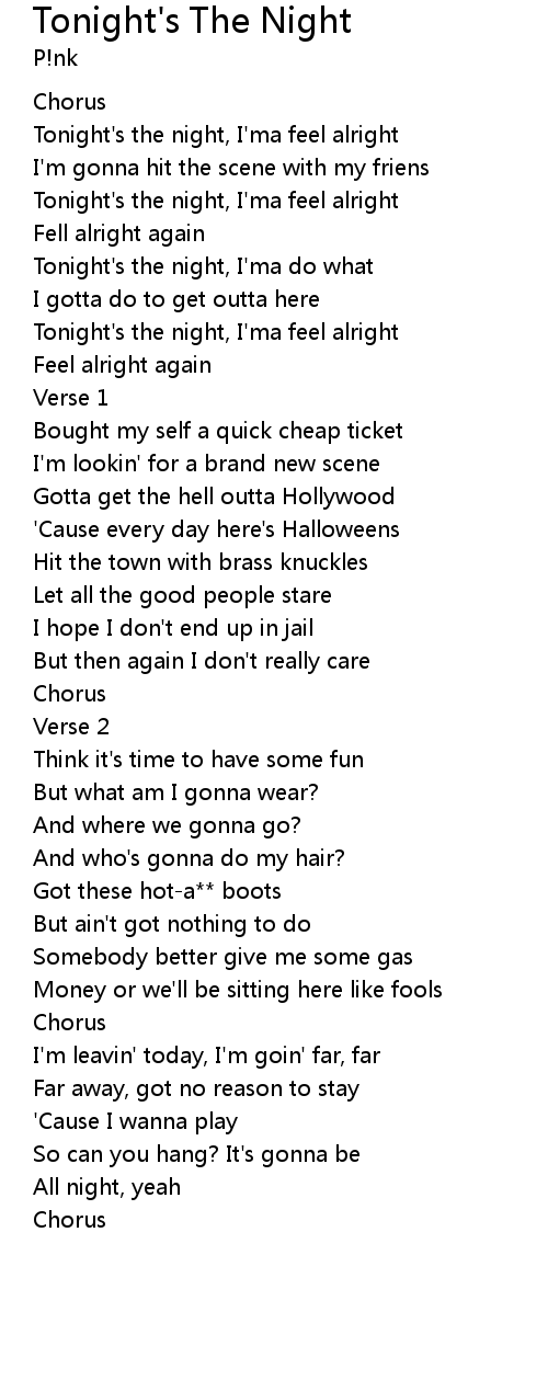 | Tonight's the night, I'ma feel alright | |