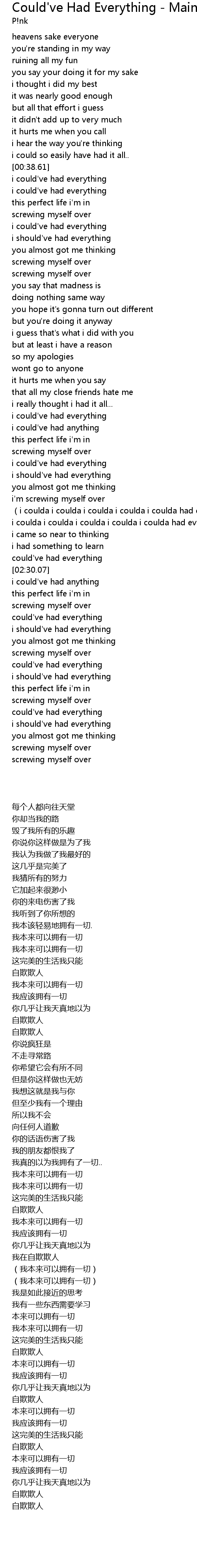 | [01:59.50] | (i coulda i coulda i coulda i coulda i coulda had everything |
