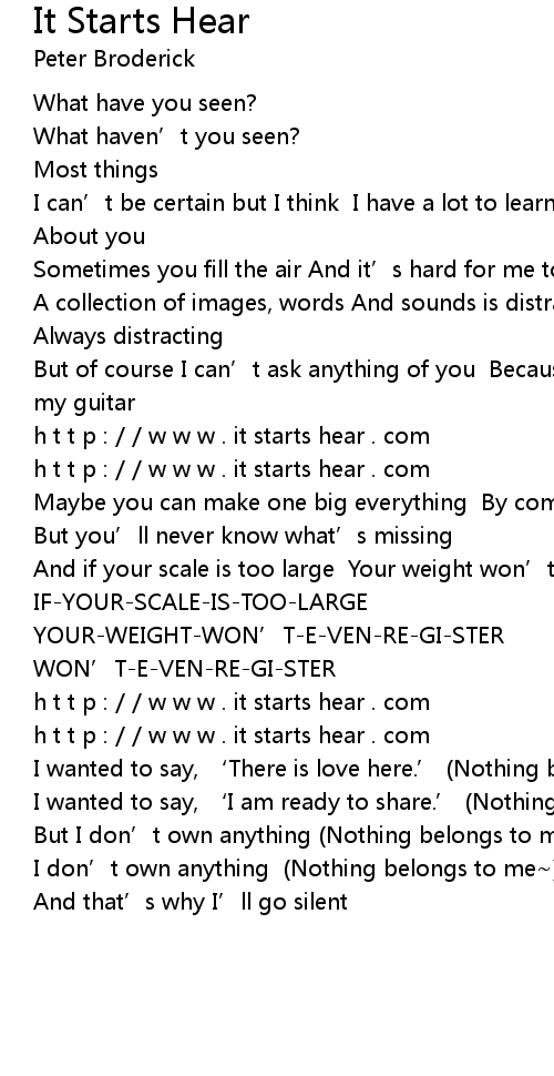 | [00:47.14] | h t t p : w w w . it starts hear . com |
