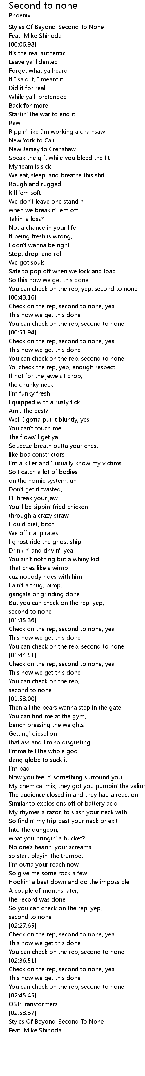 [02:59.24] Styles Of Beyond-Second To None
