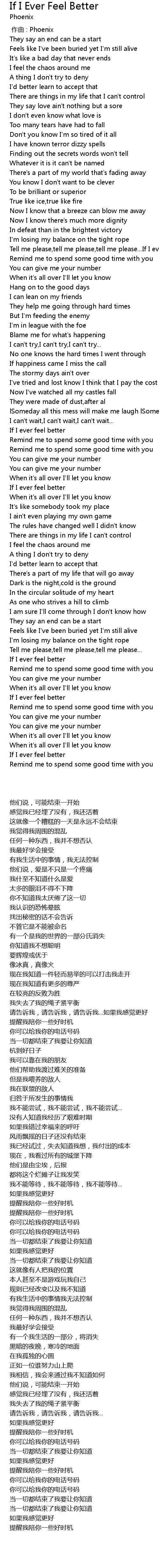 | [00:59.878] | Tell me please,tell me please,tell me please...If I ever feel better |
