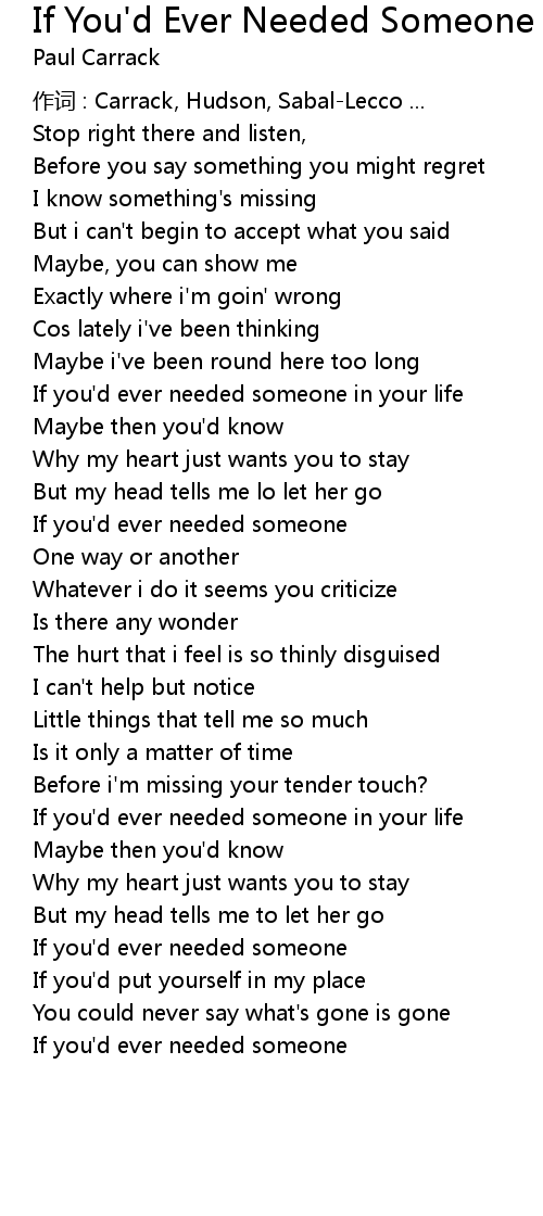 | If you' d ever needed someone in your life | |