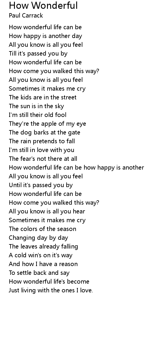 How wonderful life can be how happy is another day |