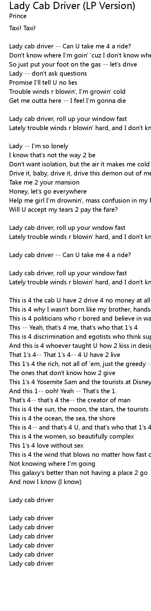 | Lady cab driver -- Can U take me 4 a ride? | |