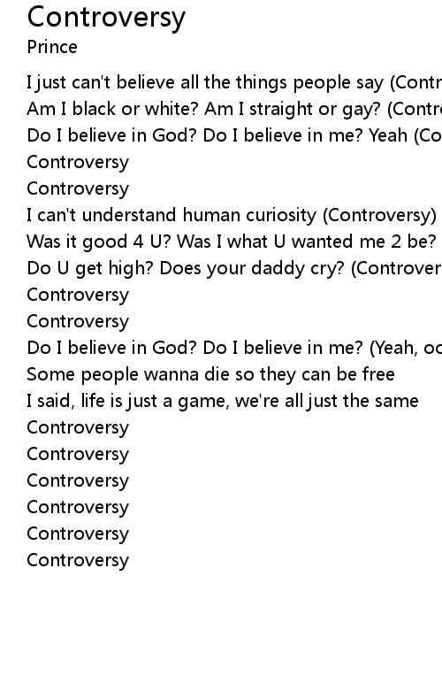 | [00:47.325] | Do I believe in God? Do I believe in me? Yeah Controversy |