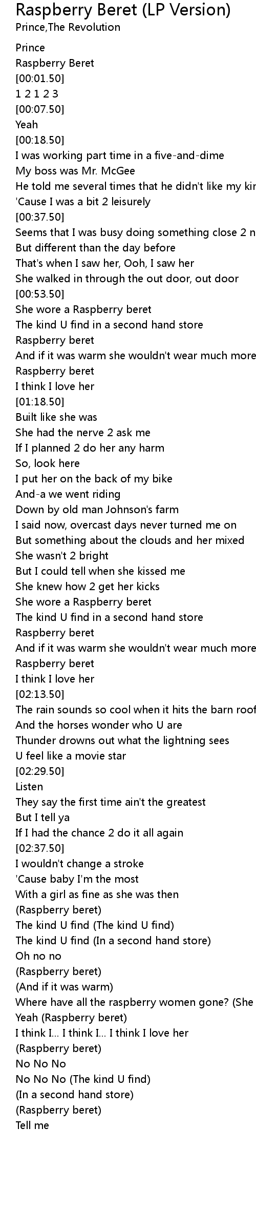 Raspberry Beret (LP Version) Lyrics