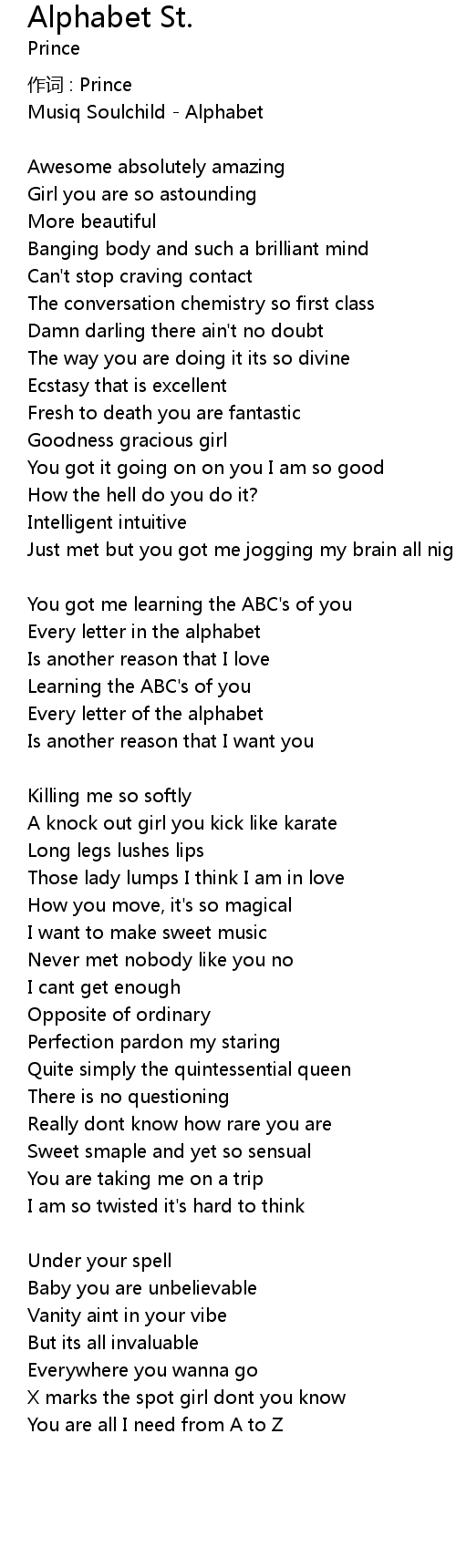 | Song | Alphabet St. |